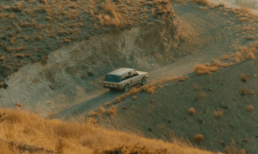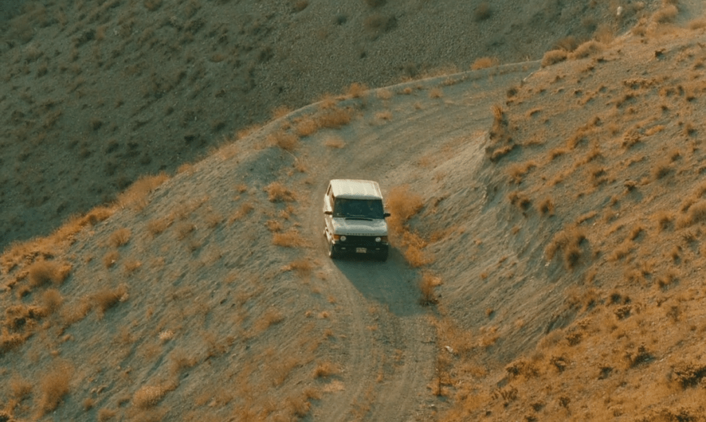 Taste of Cherry develops similar variations. In one moving shot, the camera follows a passing Range Rover. When the vehicle temporarily disappears from view due to uneven terrain, the camera autonomously continues moving—across the empty landscape. This shot is varied several times in the film, under different lighting conditions, with different directions of both camera and vehicle movement. Kiarostami creates stylistic variations independent of the narrative’s demands, making the landscape a prominent aesthetic element that is sometimes more captivating than the human protagonists. The repetitions create an analogy to poetic rhyme and give the film a lyrical quality.