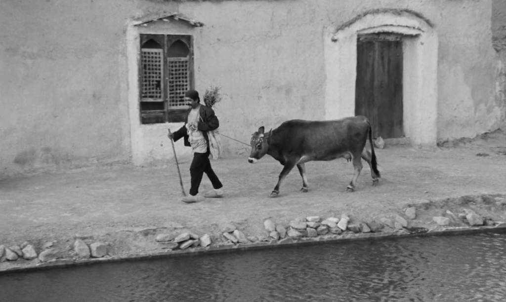 The most influential movie of the decade—and arguably one of the most important Iranian films ever made—was The Cow (Gav, 1969), directed by Dariush Mehrjui. The film absorbed modernist aesthetics and established several defining features that would shape later Iranian New Wave works. The entire story is set in a small village. Mashd Hasan is the only villager who owns a cow, a fact that fills him with pride. During a short trip to the city, the cow dies. The villagers bury the animal and agree, out of compassion, to hide its death from Mashd Hasan. Instead, they tell him that the cow has run away.